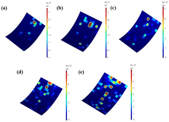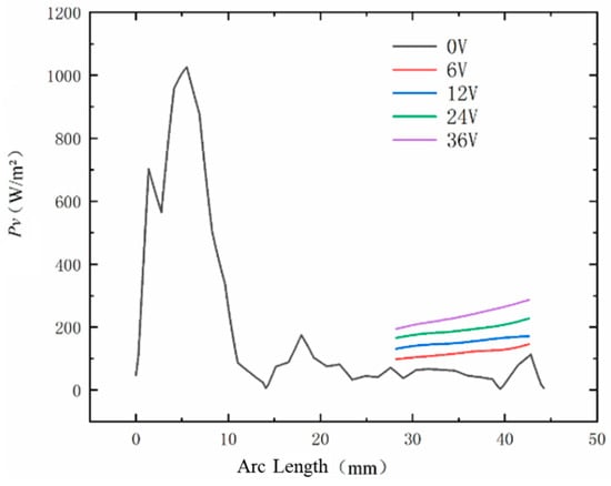 The presence of liquid metal droplets induces higher velocities in nearby abrasives. When these abrasives contact the workpiece surface, they exert substantial normal forces, thereby enhancing the Pv values in the areas they traverse, as shown in Figure 13. Furthermore, the continuous action of the electric field amplifies the impact of the droplets, resulting in a progressive increase in Pv values.