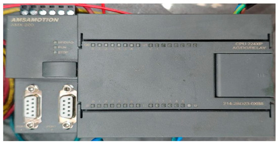 The test control mainly involves using a programmable logic controller (PLC) to control the commutation of a three-position four-way solenoid directional valve. The PLC used is the Aimoxun CPU224XP, which is compatible with the Siemens S7-200. It has advantages such as a compact structure, a relatively fast real-time response, and the ability to provide rapid and precise control of sequences and process control, as shown in Figure 4. Connect the PLC and the computer terminal through a USB-PPI cable. Then, use the STEP7-Micro/WIN V4.0 SP9 programming software to set the communication parameters to complete the communication between the PLC and the computer. Design and program the required procedures using the PLC programming software. After the programming is completed, download the program block to the PLC. The PLC controls the commutation of the three-position four-way solenoid directional valve through this program.