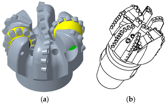 The rotary self-renewal structure device comprises two structures: a rotary disc cutter and a self-renewal wheel. Figure 16a shows a schematic diagram of a rotary drill bit, while Figure 16b shows a schematic diagram of a self-renewal wheel bit. The axis of the rotary disc cutter is perpendicular to the radial direction of the drill bit. The rotary disc cutter and the drill bit body can realize single- or double-side support connection. The axis of the self-renewal wheel is consistent with the radial direction of the drill bit (Figure 16b). The updating wheel is connected with the drill bit body through the shaft. The self-renewal wheel can realize multiple bottom hole renewals. While the bottom hole coverage area may be limited, especially the external area where the bit is easily worn, and the number of rotary disc cutter renewals is limited, the bottom hole coverage area of the bit is large, such that full coverage of the radial area of the bit can be achieved.