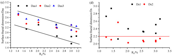 Surface fractal curve of the micro-pores (a,b), the surface fractal dimension of Das1/Das2 and Das3 of all the samples (c).
