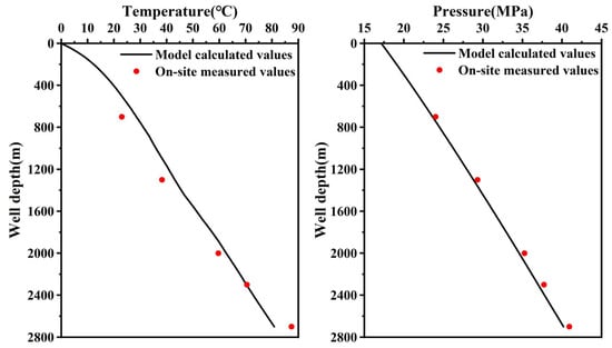 Comparison of predicted downhole temperature and pressure with field-measured data.