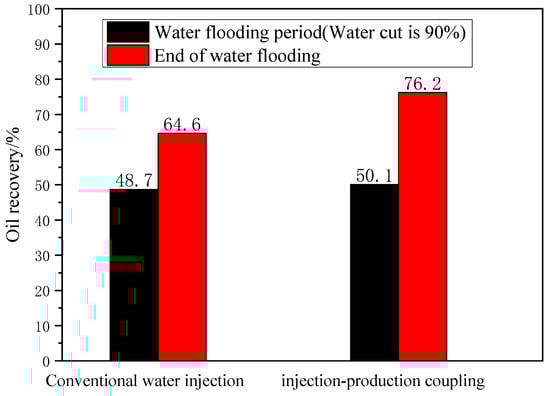 The incremental oil recovery under conventional water injection and coupling injection–production mode.