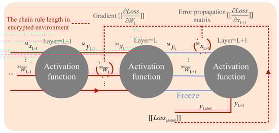 By exploring the backpropagation process, the intermediate result containing the error propagation matrix is considered a key point for updating deep models. This is because the majority of parameter matrices are not square matrices, and they do not have inverse matrices. It is difficult to infer the true value of loss through the intermediate result. Meanwhile, this also reduces the transmission length and derivative superposition of the chain rule in homomorphic encryption environments. The visualization is shown in