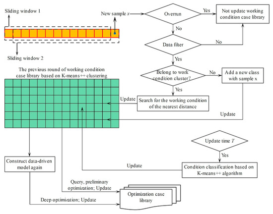 To consider the variation in the working condition case library over time, an online adaptive update strategy is proposed. The strategy is shown in Figure 7, and the steps are as follows: