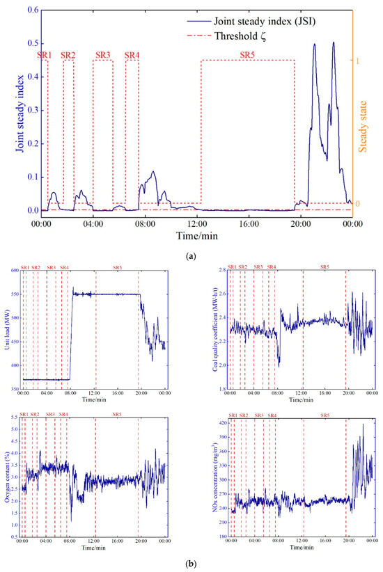 - The robust data filter using Kernel-PCA, JSI, and VMD extracts 6392 high-quality steady-state samples from 72,000 original data points. The filter successfully retains steady-state data, removes anomalies, and identifies five steady-state periods within a 24 h dataset, demonstrating its efficiency in data pre-processing for combustion optimization.