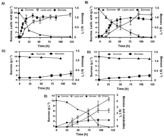 3.2. Lactic Acid Production Prevails in Sucrose Fermentation
