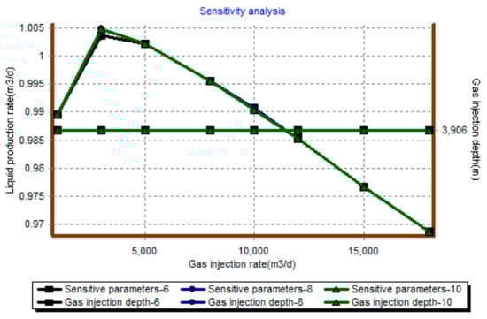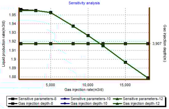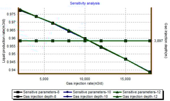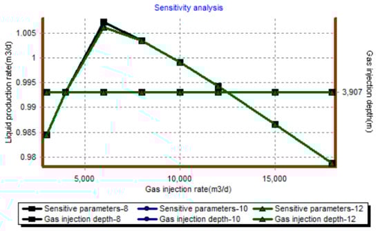 Based on the above single well parameters, the gas lift performance curves under different gas injection rates and gas injection pressure conditions are drawn as follows (Figure 18, Figure 19, Figure 20 and Figure 21).