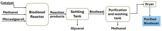 - Oliva, G.; Buonerba, A.; Grassi, A.; Hasan, S.W.; Korshin, G.V.; Zorpas, A.A.; Belgiorno, V.; Naddeo, V.; Zarra, T. Microalgae to Biodiesel: A Novel Green Conversion Method for High-Quality Lipids Recovery and in-situ Transesterification to Fatty Acid Methyl Esters. J. Environ. Manag. 2024, 357, 120830. [Google Scholar] [CrossRef] [PubMed]