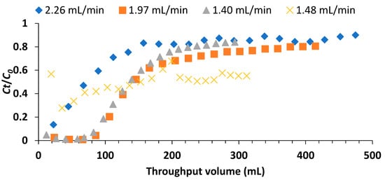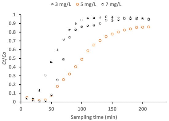 - Kelly, T.W. Determination of Adsorption Capacities Using Packed-Bed Breakthrough Tests. Master’s Thesis, B.S. Illinois State University, Urbana-Champaign, Champaign, IL, USA, 1992. [Google Scholar]