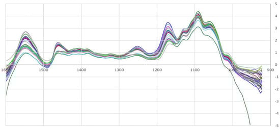 Overlaid FTIR spectra of sheep’s milk samples (X—cm−1; Y—Absorbance).