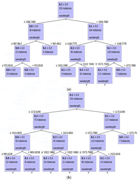 R2 (Coefficient of Determination): The primary evaluation metric used to assess the performance of the models was the R2 value, which measures the proportion of variance in the dependent variable (milk type) that is predictable from the independent variables (spectral and physicochemical data). An R2 value close to 1 indicates a model with strong predictive capabilities, while an R2 close to 0 suggests poor model performance. In this study, the decision tree and random forest models exhibited high R2 values, indicating their strong predictive power for classifying the milk samples.