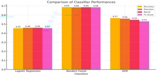 Mean Absolute Error (MAE): Mean Absolute Error (MAE) was also used to measure the average magnitude of the errors between the predicted and actual classifications, without considering their direction. MAE provides an intuitive understanding of the model’s performance by showing the average deviation from the actual value. Although the MAE values were not explicitly reported, the high R2 values in tree-based models suggest that the errors were minimal.