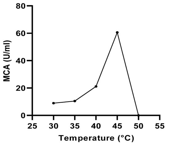 The effect of temperature on the MCA of the proteases was determined following the standard assay procedure in the temperature range of 30–60 °C at intervals of 10 °C [].