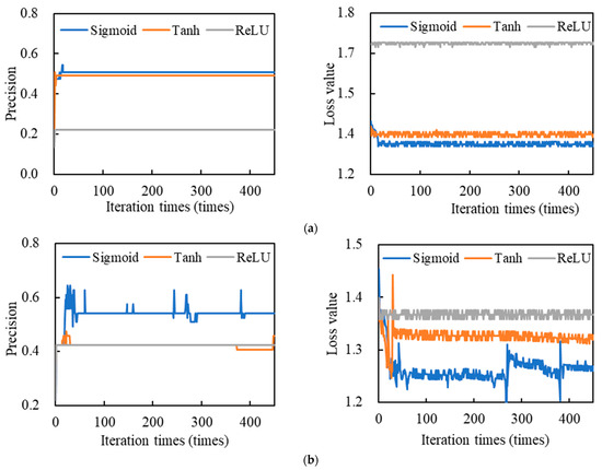 To obtain the optimal classification model, it is necessary to select the best activation function and optimizer. The activation function maps the input of the neuron to the output, representing complex nonlinear relationships. In this paper, three types of activation functions are compared. The Sigmoid function has an input range from negative infinity to positive infinity, an output range of (0, 1), and is a continuous function centered at 0.5. Its mathematical expression is as follows: