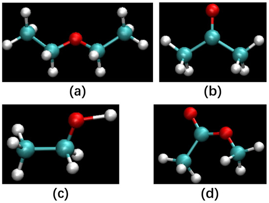 (a) Ether-type MMP reducer (diethyl ether), (b) ketone-type MMP reducer (ketone), (c) alcohol-type MMP reducer (ethanol), and (d) ester-type MMP reducer (methyl acetate). All reducers in this figure are deliberately constructed to have short carbon chains to emphasize on the influence of the oxygen atoms on the distribution of CO2 molecules.