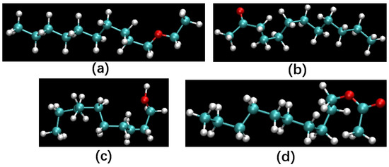 Structures of (a) ether-type, (b) ketone-type, (c) alcohol-type, and (d) ester-type MMP reducers with C10 carbon chain.