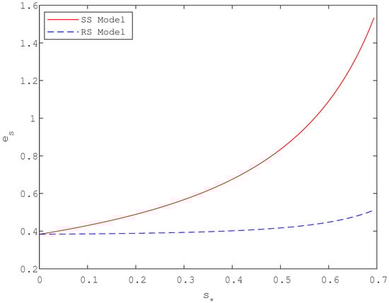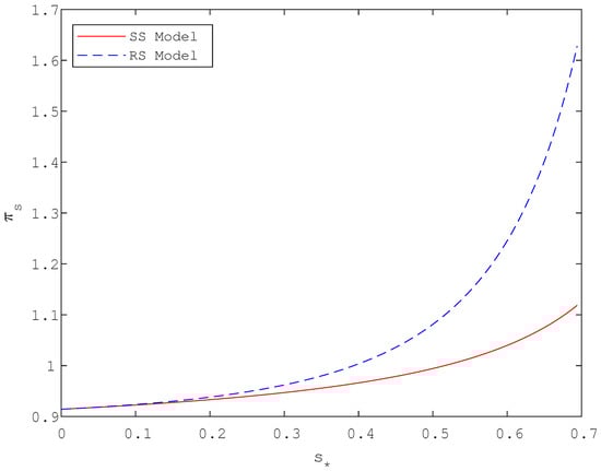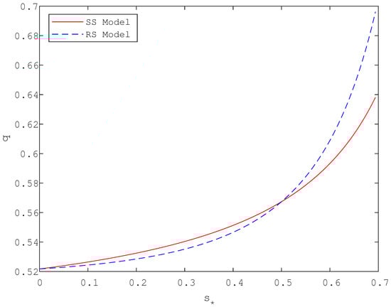 It is evident that as the government subsidy coefficient increases, the subsidy expenditure provided to the gas supplier also increases. When the government expenditures for the two subsidy mechanisms are equal, that is, at , Theorem 7 can be derived.