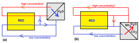 The success of the MRC has led to a number of new applications. We will mention a few. Cusick et al. showed that the MRC also works well with ammonium bicarbonate instead of NaCl [28]. This salt is volatile, which means that the feed waters can be regenerated with heat. Due to a closed feed water system, the MRC is independent of fresh and salt water but derives its energy from waste heat.