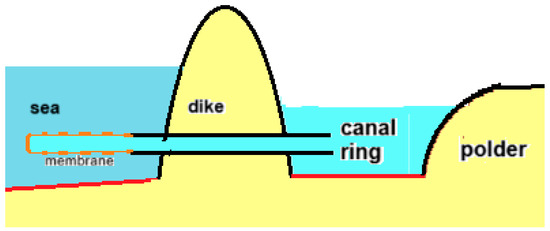 - In the Netherlands, an RED pilot was constructed at the closure dam between the Lake IJssel and the Wadden Sea with an infrastructure enabling the installation of 50 kW RED stacks [3,55,56]. The company REDstack BV is developing the whole process technology and also the development and manufacturing of their own innovative cross-flow stacks (Figure 11).
