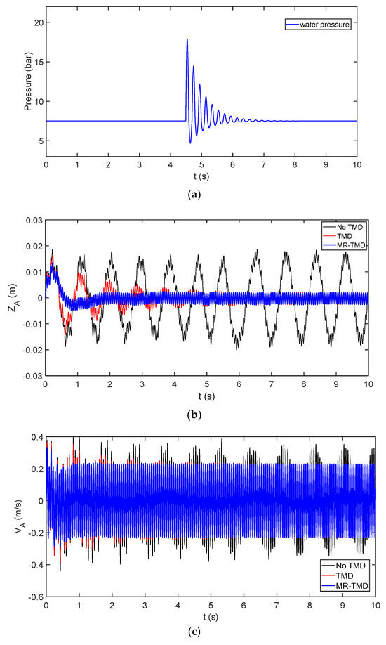 - The proposed MR-TMD demonstrates superior performance, achieving a maximum improvement of 62.2% in vibration suppression compared with the case without TMD, indicating that MR-TMD is highly applicable in practical scenarios. Although introducing MR dampers in practical TMD applications may initially increase costs, mass production for long pipelines can reduce costs. Additionally, the extremely low power consumption of MR dampers ensures a minimal impact on operating costs. Amortizing the purchase and operating costs of MR dampers into the construction and long-term operating costs of each pipeline section can minimize the overall cost impact on the pipeline system.