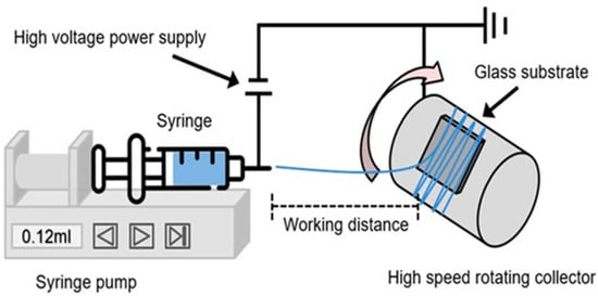 Schematic diagram of electrospinning experimental setup (reproduced with permission from reference []).