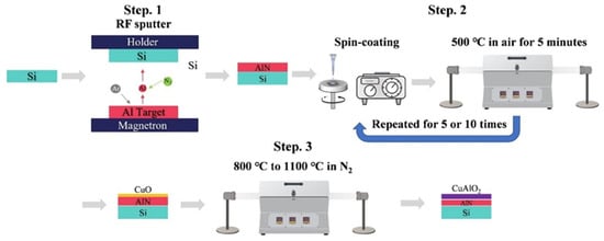 Illustration of the CuO/AlN film and CuAlO2/AlN thin-film preparation procedures (reproduced with permission from reference []).
