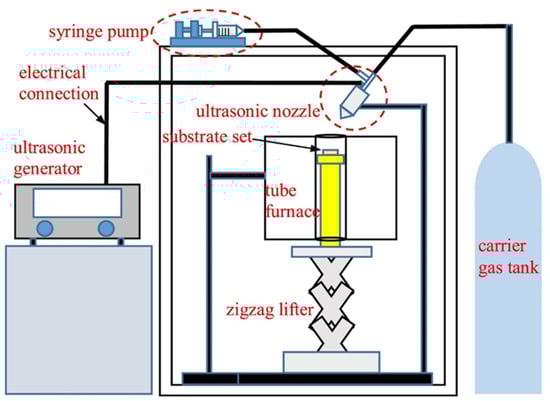 The ultrasonic spray pyrolysis system for LSBC thin-layer deposition (reproduced with permission from reference []).