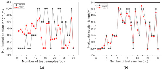As shown in Figure 9, after the training dataset was increased from 50 sets to 150 sets, the error in the predicted horizontal section length decreased from 33.10% to 7.85%.