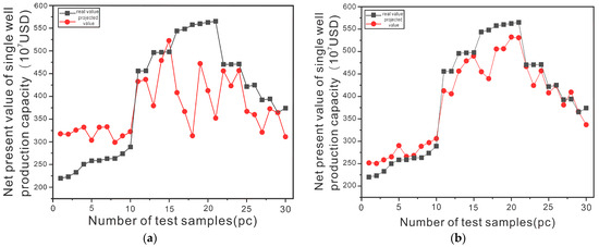 As shown in Figure 10, after the training dataset was increased from 50 sets to 150 sets, the error in the predicted single well productivity net present value decreased from 21.0% to 7.60%.