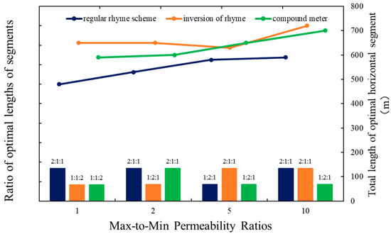 Optimal horizontal segment length and length ratios under different permeability rhythm and permeability range conditions.