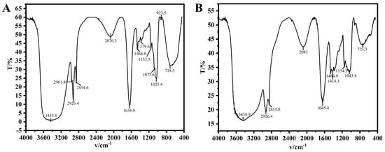 (A) Infrared spectrum of the product synthesized in the experiment; (B) infrared spectrum of the standard alkyl polyglycoside reference sample.
