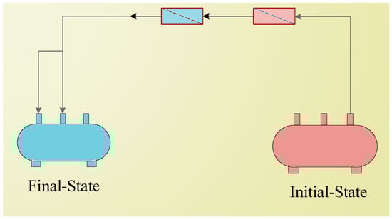 This study adopts a simplified path design in the SSN model to achieve a stable and efficient filtration solution in the filtration system. The adopted path design assumes relatively simple filtration conditions, allowing for the optimization of paths and equipment configuration. The filtration path defines three ports of the diesel storage tank as free inlets and outlets and identifies three different paths: a water impurity filter, a mechanical impurity filter, and a regular pipeline without any filtration device. As shown in Figure 2, the SSN diagram clearly illustrates the entire flow path and processing sequence.