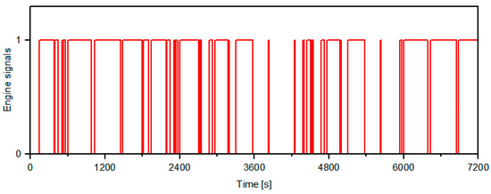 To demonstrate the superiority of the ITMS with waste heat recovery functionality, an independent TMS is used as a reference. As shown in Figure 1, the ITMS uses an air source heat pump to heat the battery. The initial SOC of the battery is set to 0.7, and the upper and lower SOC limits are set to 0.6 and 0.3, respectively, to simulate the energy management strategy under normal driving conditions. The engine’s on/off signals are illustrated in Figure 13.