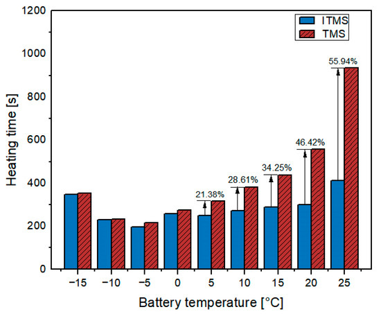 The ambient temperature is set to −20 °C. The performance of the integrated thermal management system (ITMS) will be analyzed from two dimensions: heating time and energy consumption.