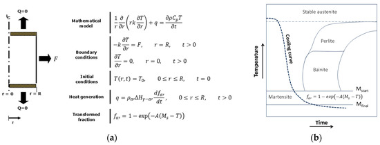 - Babu, K.; Prasanna Kumar, T.S. Comparison of Austenite Decomposition Models During Finite Element Simulation of Water Quenching and Air Cooling of AISI 4140 Steel. Metall. Mater. Trans. B 2014, 45, 1530–1544. [Google Scholar] [CrossRef]