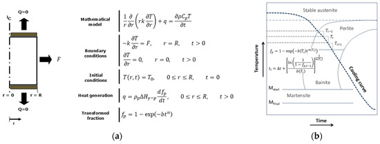 - Agarwal, P.K.; Brimacombe, J.K. Mathematical Model of Heat Flow and Austenite-Perlite Transformation in Eutectoid Carbon Steel Rods for Wire. Metall. Trans. B 1981, 12, 121–133. [Google Scholar] [CrossRef]