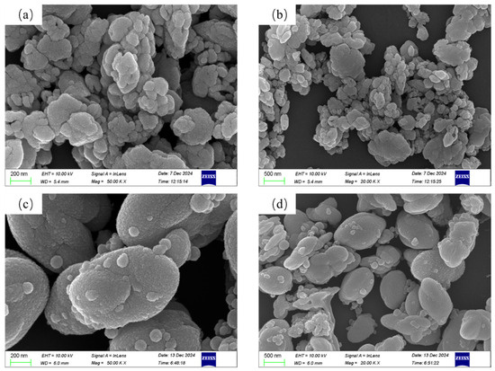 In contrast, Figure 7c,d illustrate the dramatic change in the appearance of barium sulfate particles when a scale inhibitor is introduced. The inhibitor promotes the formation of regular crystal shapes with smooth surfaces and well-defined edges. This regularity suggests a more controlled nucleation and growth process, where the inhibitor likely interacts with the barium sulfate ions to guide the crystallization into a more ordered structure.