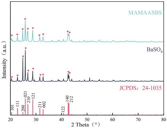 The barium sulfate scale was scanned by XRD before and after scale inhibitor treatment, and the results are shown in Figure 8.