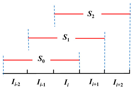 Under the condition of a single template S1 = {Ii−1, Ii, Ii+1}, combining Equations (12) and (13), the expression of the polynomial function p(x) can be solved as: