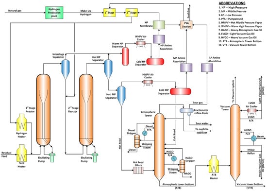 The processing diagram of the commercial H-Oil ebullated bed vacuum residue hydrocracker is presented in Figure 1. Details of the LNB H-Oil residue hydrocracker operating conditions are presented in [].