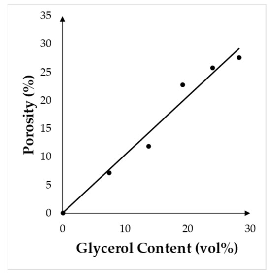 where y3 represents glycerol content (vol%) and x3 is the porosity (%), with R2 of 0.9717.