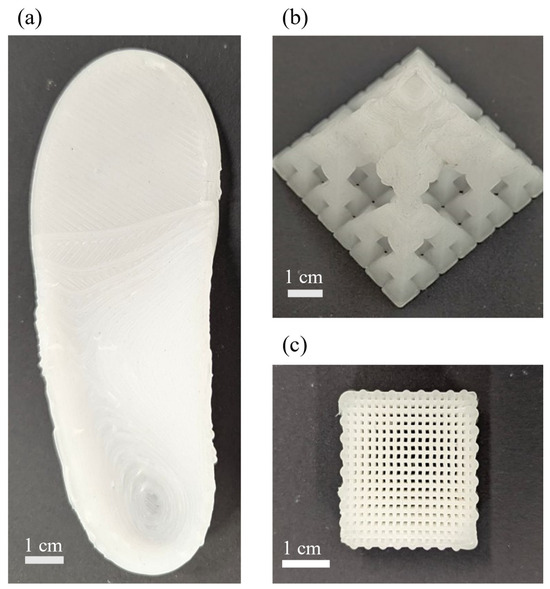 There are numerous cases of DIW of PDMS-based inks. To implement DIW, these inks must fulfil specific rheological features. In short, the inks should be viscoelastic with adequate yield stress to resist deformation for layer stacking, as well as exhibiting shear-thinning characteristics to enable smooth extrusion through the nozzle [40]. Besides these, the storage modulus of such inks must be high for shape retention at low shear-stresses to manifest a solid-like nature [21]. In contrast, inks with low storage modulus and insufficient yield stress will slump under their own mass, while inks with high viscosities might not be extrudable via small nozzle diameters, with such cases ultimately leading to print failure [40,41,42]. However, researchers have achieved the desired printing rheology for PDMS-based inks, either by blending PDMS components of different viscosities, incorporating fillers as rheology modifiers, or by speeding up curing of low viscosity inks with precuring treatments during printing [43].