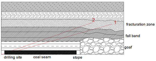 Figure 12 is a schematic diagram of the arrangement of high-level drainage boreholes. The angle, length, and diameter of the No. 1, 2, and 3 boreholes are shown in Table 6.