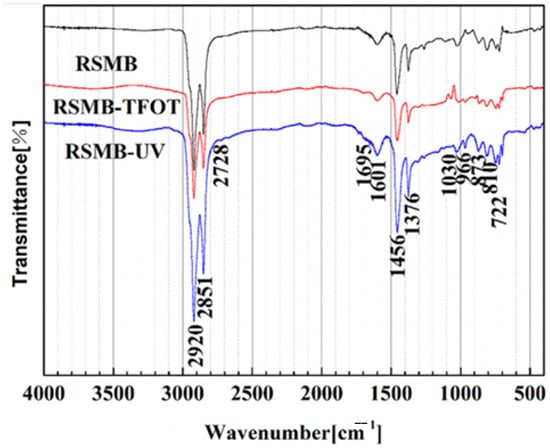 FTIR spectra of the RSMB before and after aging [64] (Reproduced with permission from Zhengang Feng, Construction and Building Materials, Elsevier, 2021).