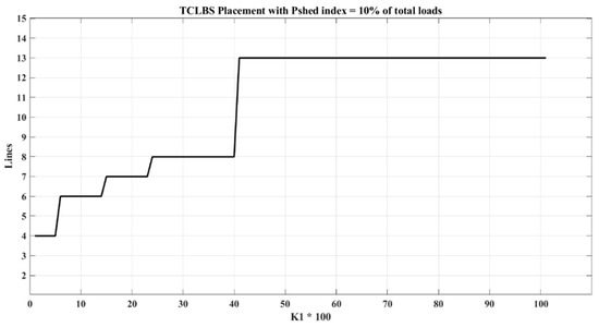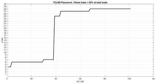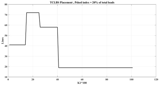 Additionally, it is assumed that the load shedding amount increases to 20% of the total network load. In this context, Figure 5 and Table 4 present the switch locations and the objective function values in relation to the variations of the coefficient K1. Furthermore, Figure 6 depicts the switch placement as it pertains to changes in the coefficient K1 within the network.