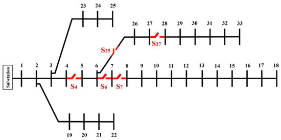 Single-line diagram of the under-study feeder network.