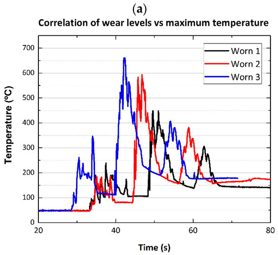 This highlights that the infrared measurements provide consistent values, enabling effective monitoring of tool wear throughout machining operations, which directly affects the surface finish of the component. This behavior showed a strong correlation with the literature, which indicates that excessive wear on the cutting tool directly contributes to an increase in maximum temperature during the machining process [29].