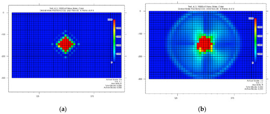 The well model is an extension of the approach proposed by Peaceman [18,19] for both square and non-square gridblocks. The treatment of mobility adheres to the method suggested by Chappelear and Williamson [20]. Furthermore, the geometric factor enables the calculation of the equivalent radius based on the gridblock’s geometry and the well’s position within it. The injection well model establishes a relationship between the reservoir flow rate of phase , the wellbore pressure , and the pressure at the grid point as follows:
