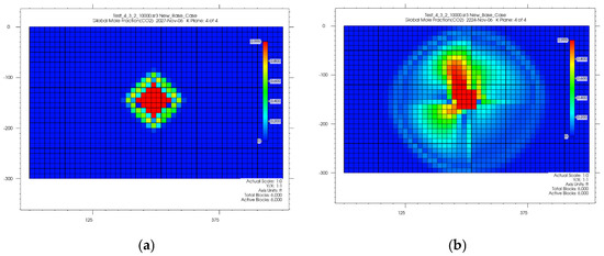Carbon capture and storage (CCS) has become a key method to lower atmospheric CO2 levels as the need for solutions to decrease greenhouse gas emissions grows globally. Geological sequestration is regarded as a feasible long-term strategy for storing CO2 because of its extensive storage capabilities and accessibility, especially in deep saline aquifers. A significant amount of anthropogenic CO2 emissions could be stored in saline aquifers, which are thought to have a worldwide storage capacity of 1000–10,000 gigatons [1,2]. The effectiveness of CO2 storage in saline aquifers depends on multiple factors, including reservoir salinity, temperature, depth, and permeability. Among these factors, salinity plays a particularly important role as it influences the solubility of CO2 in the formation water, the density and viscosity of brine, and the physical and chemical interactions between CO2 and the reservoir matrix [3]. These parameters, in turn, affect the CO2 plume migration dynamics, which are critical to ensuring safe and effective storage. Drilling and fracturing operations, integral to accessing some reservoirs, have also been shown to enhance CCUS potential by increasing permeability and reducing migration barriers. For instance, hydrates formed as by-products during CO2 leakage can play a role in preventing further leakage [4]. Horizontal migration of the CO2 plume is a particularly relevant aspect of storage as it determines the extent of horizontal spread and impacts the risk of leakage, containment integrity, and storage efficiency. According to earlier research, higher salinity tends to decrease CO2 solubility, which lowers the dissolved phase and restricts the reservoir’s storage capacity. This mechanism, called the “salting-out effect”, promotes the formation of a free gas phase, which has a higher capacity for migration, and limits the solubility of CO2 in extremely saline settings. The main factors influencing the horizontal migration of CO2 are buoyant forces, pressure gradients, and the formation’s permeability; in this study, these factors are controlled by injection depth and salinity levels [5].