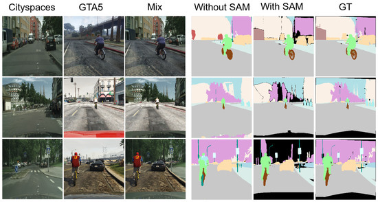 Edge Detection Improvement. As shown in Figure 5, the SAM-enhanced segmentation results exhibited notably sharper object boundaries, especially in the rider and bicycle regions. Compared to models without SAM, the segmentation masks generated by SamDA more closely resembled the GT, effectively mitigating boundary ambiguity.